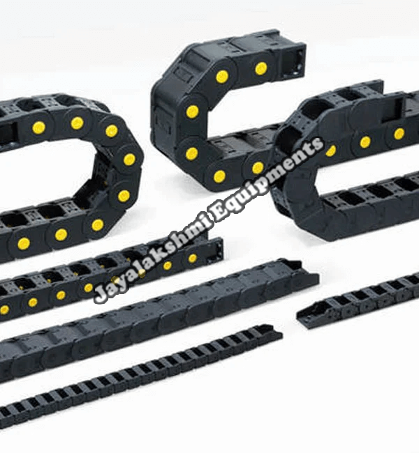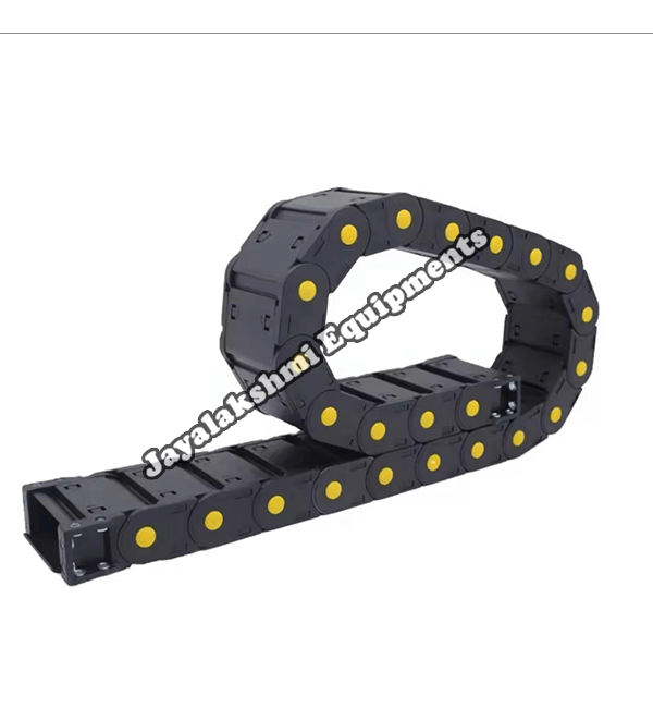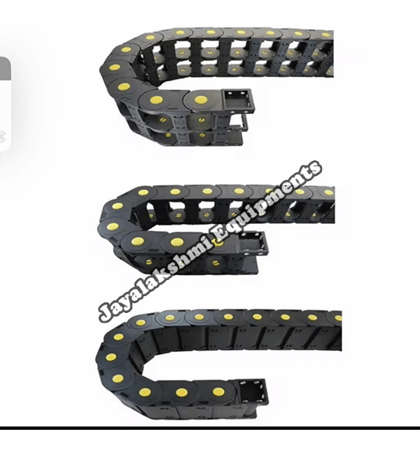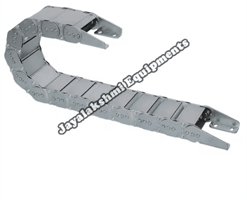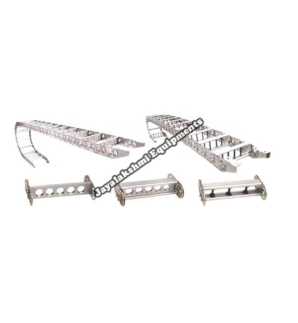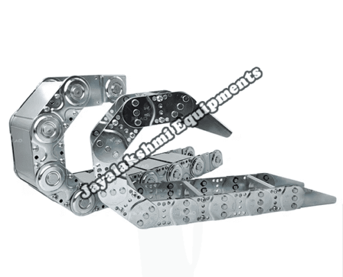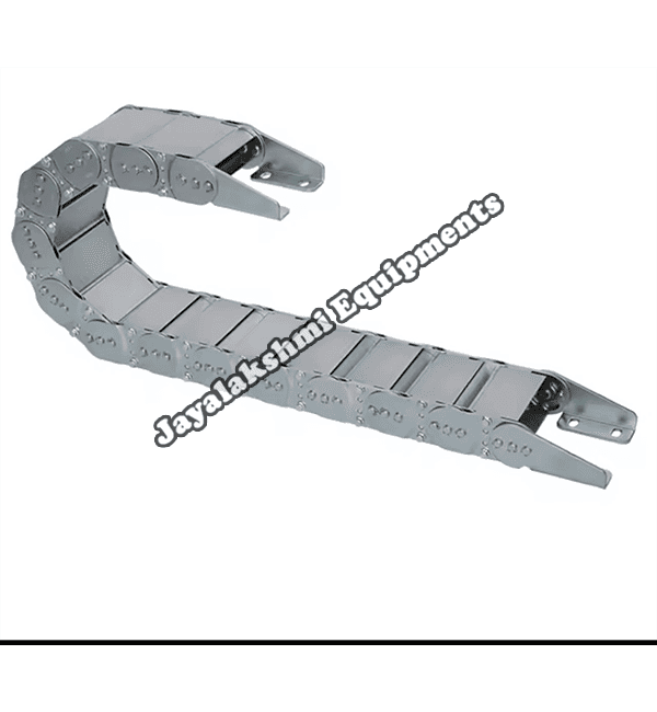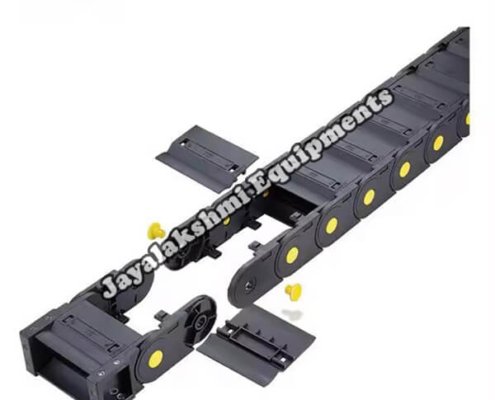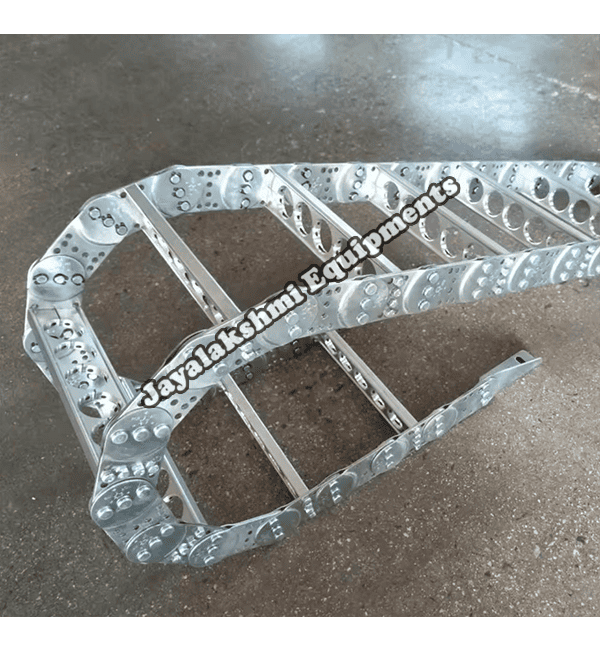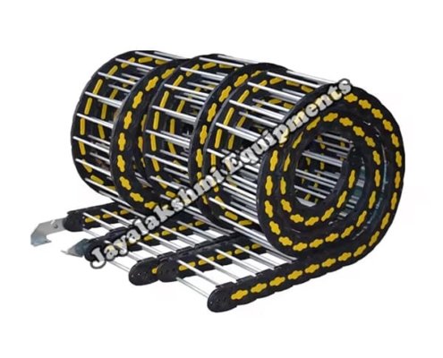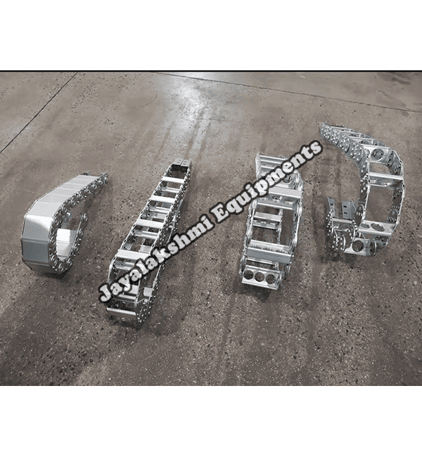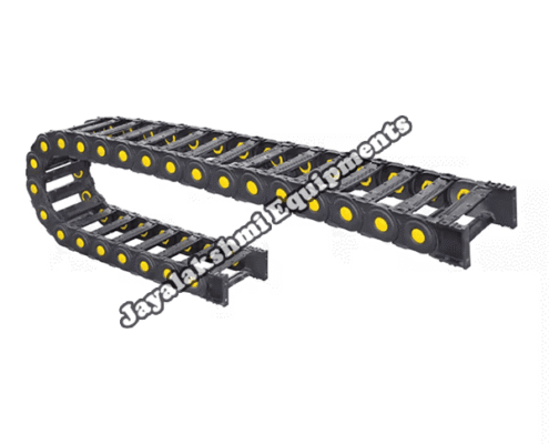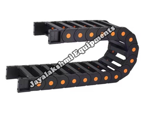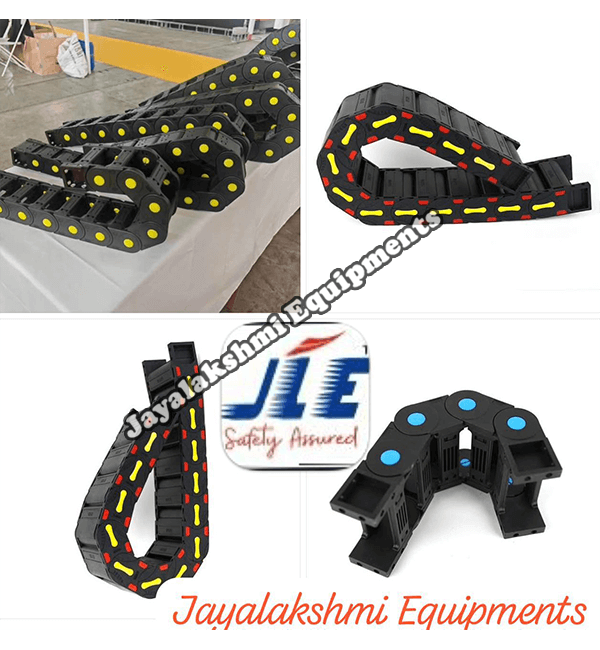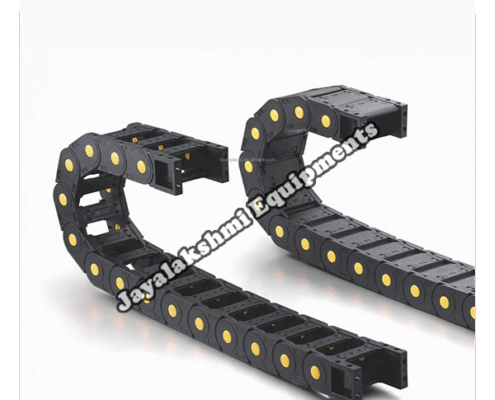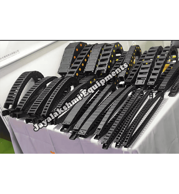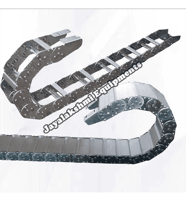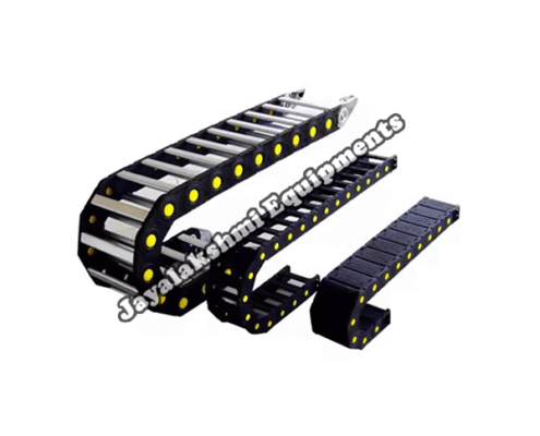 Cable drag chain can be used for conveying cables and hoses, wherein the medium in the hose can be air, liquid or any gaseous matter jayalakshmi equipment cable drag chain can be supplied for wide ranges of length of travel, number of cables and hoses, acceleration and speed requirements, existing space conditions, movements and special work environments.