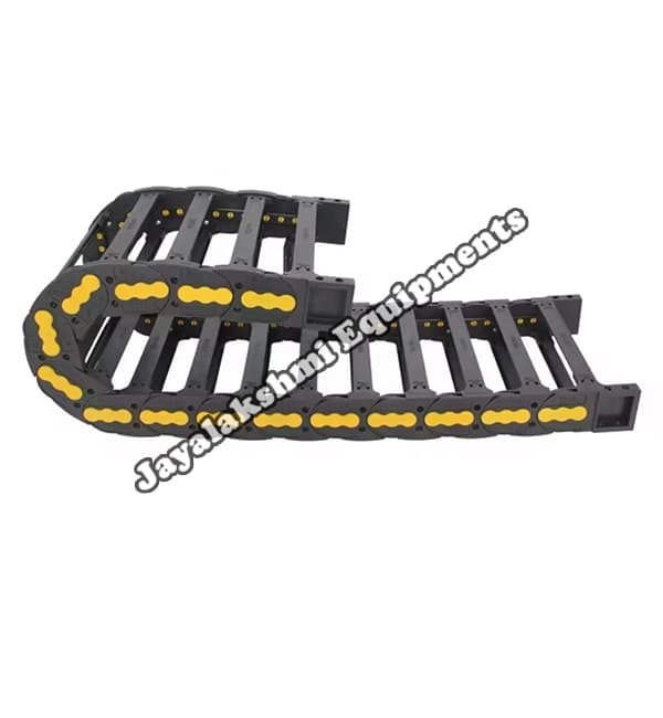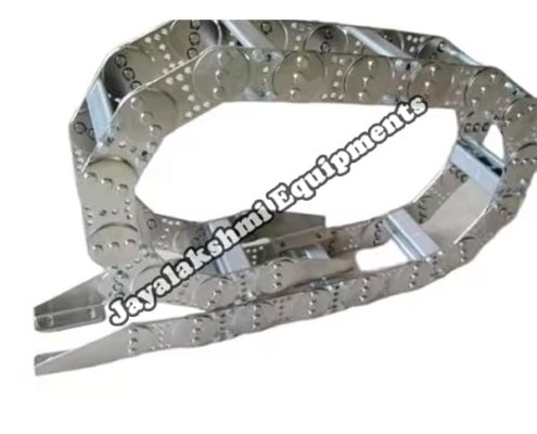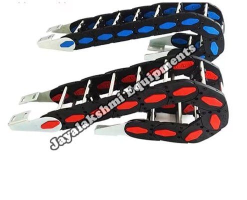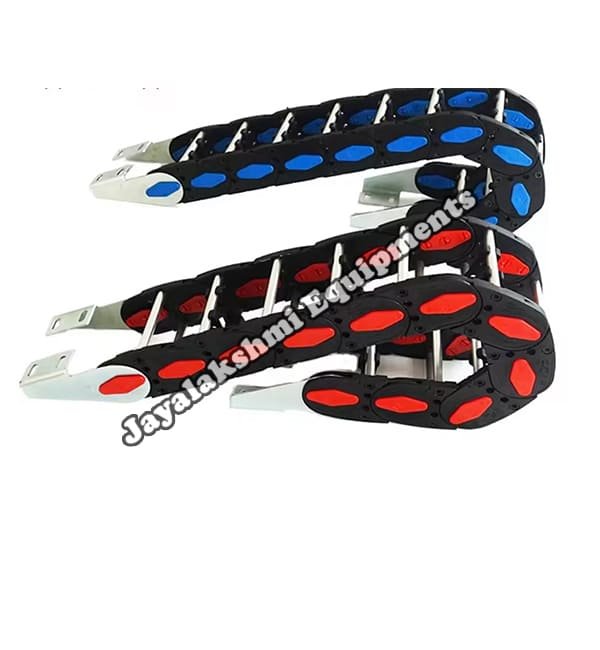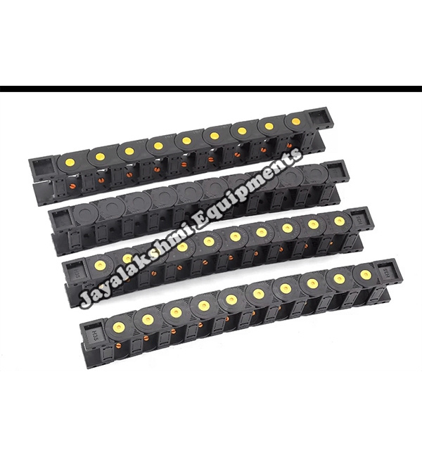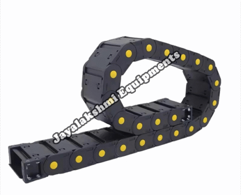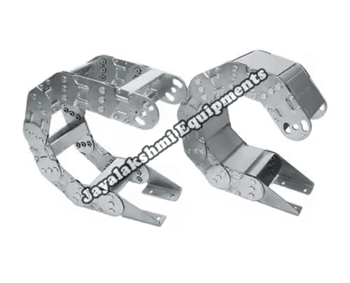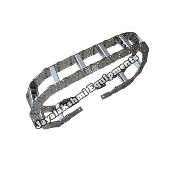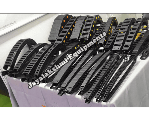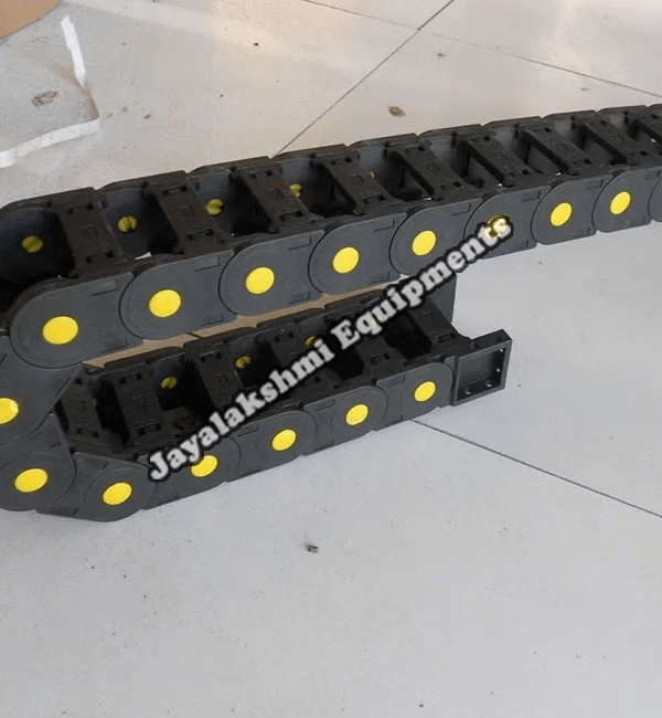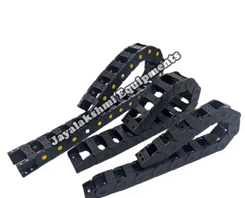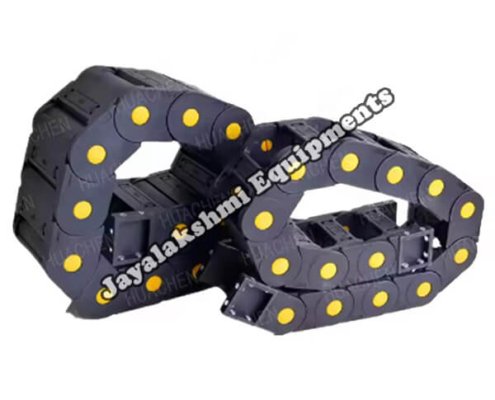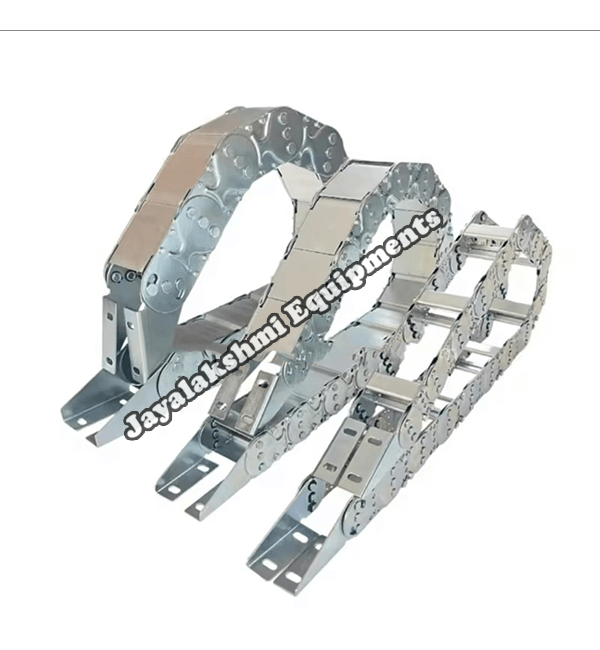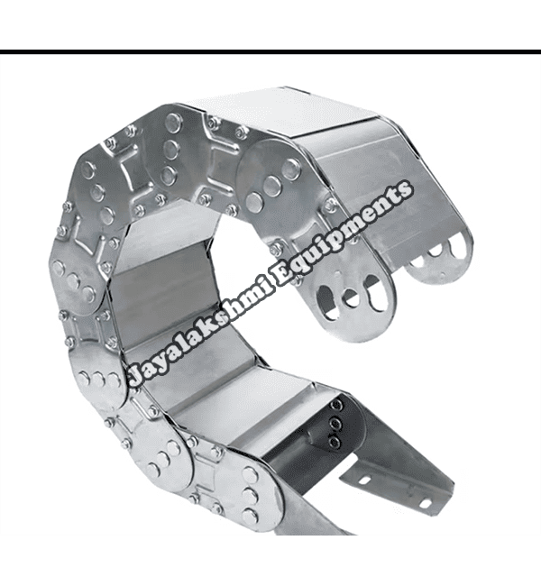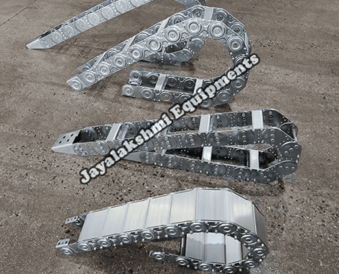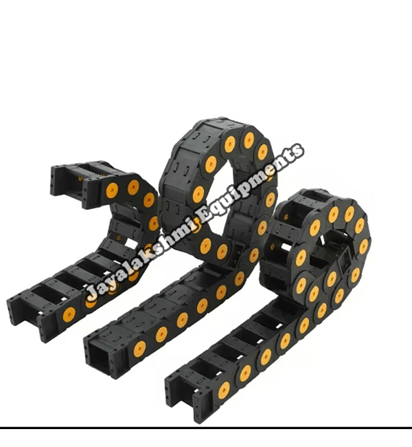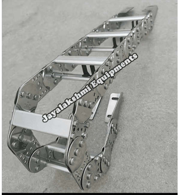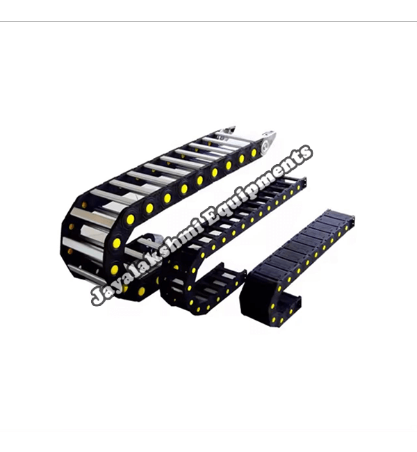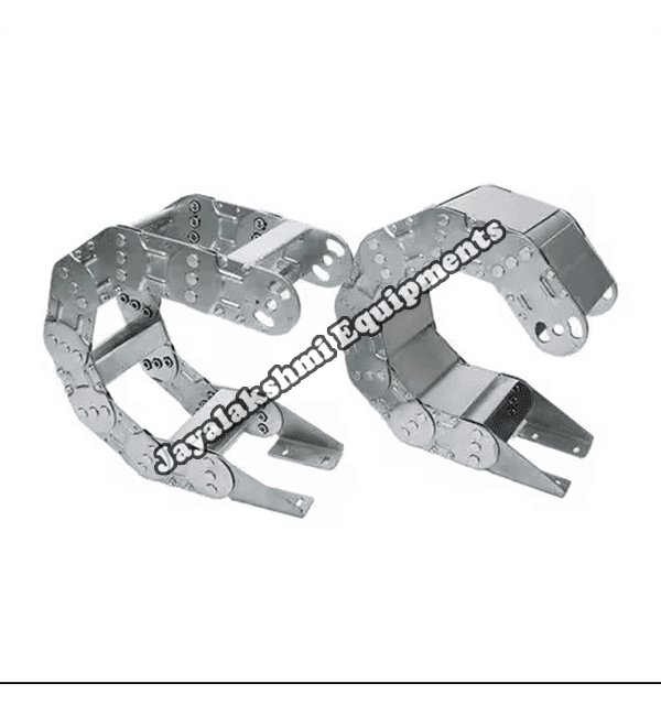 Cable drag chain can be used for conveying cables and hoses, wherein the medium in the hose can be air, liquid or any gaseous matter jayalakshmi equipment cable drag chain can be supplied for wide ranges of length of travel, number of cables and hoses, acceleration and speed requirements, existing space conditions, movements and special work environments.