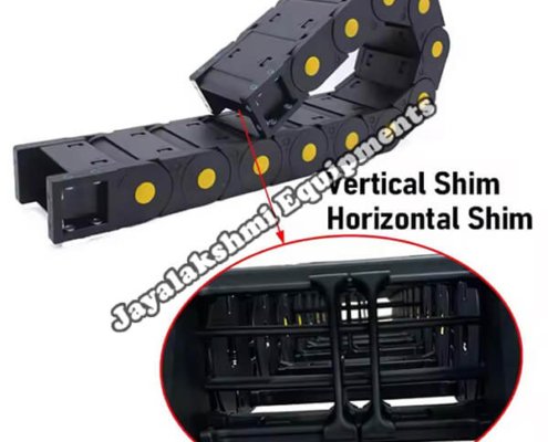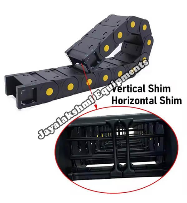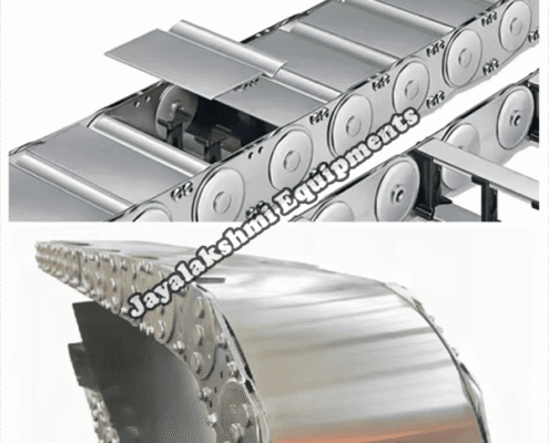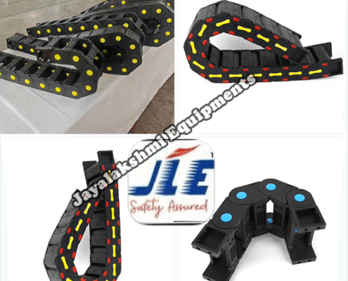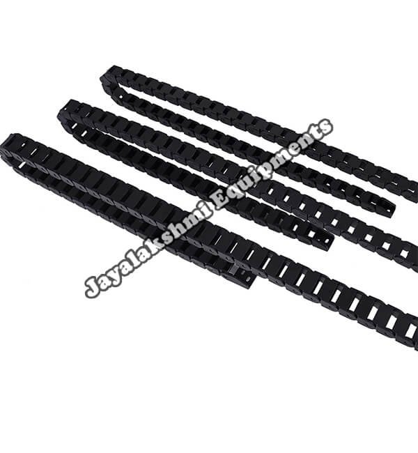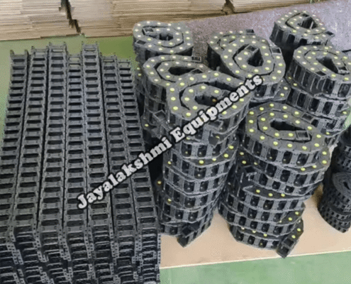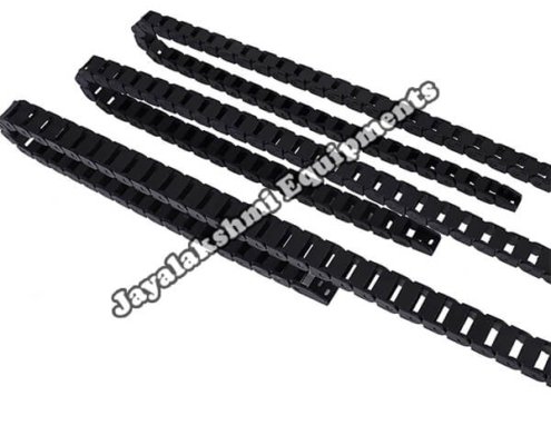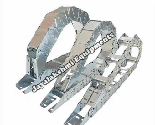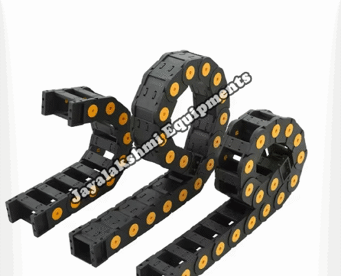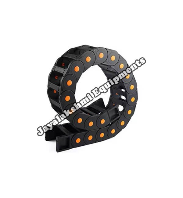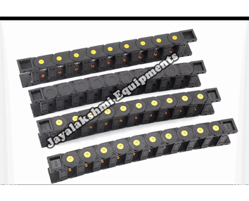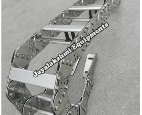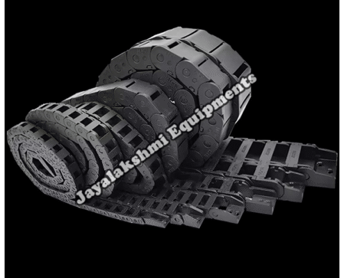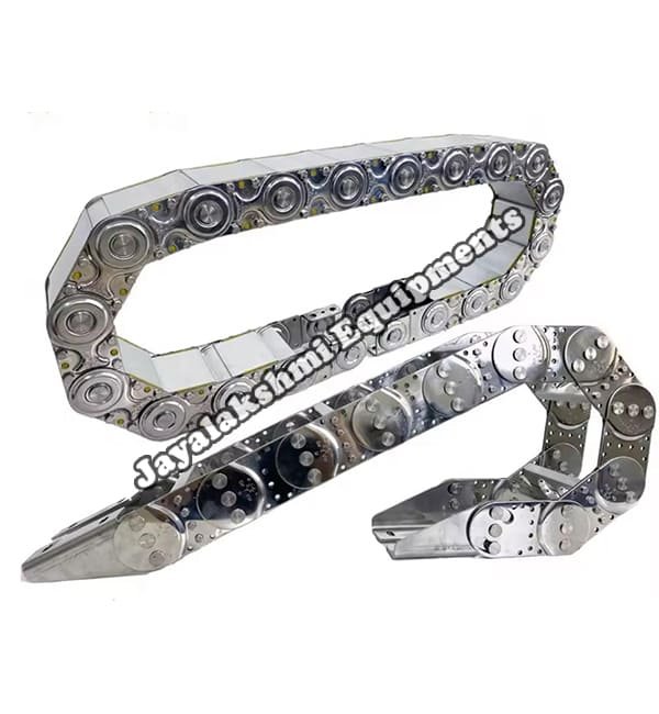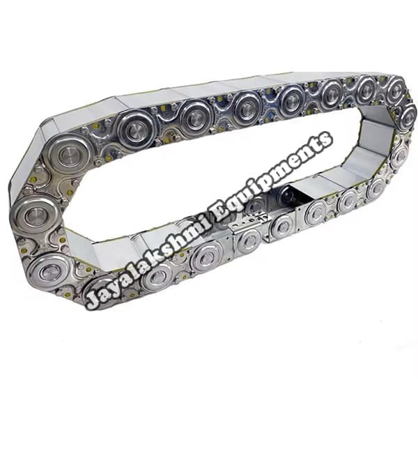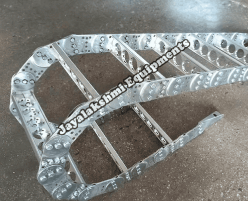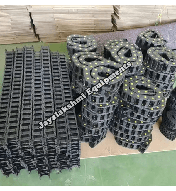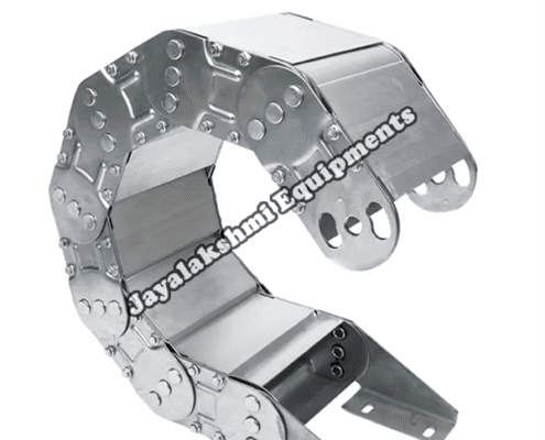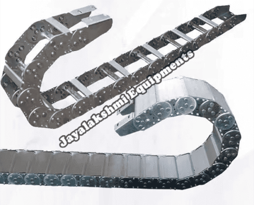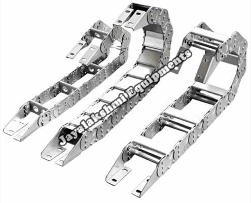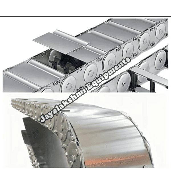 Cable drag chain can be used for conveying cables and hoses, wherein the medium in the hose can be air, liquid or any gaseous matter jayalakshmi equipment cable drag chain can be supplied for wide ranges of length of travel, number of cables and hoses, acceleration and speed requirements, existing space conditions, movements and special work environments.