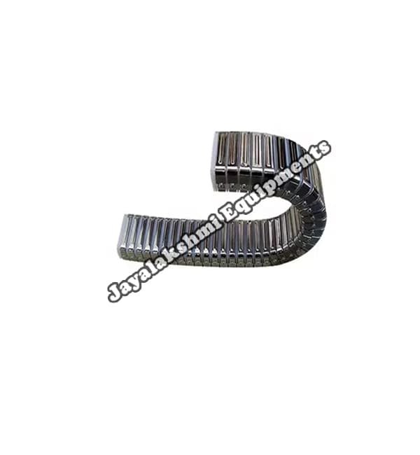 Jayalakshmi Equipment Pvt Ltd Cable Drag chains are used for conveying flxible cables/hoses etc. to movable units with maximum realiability. The construction of these chains is such that they cannot bend below a fixed minimum radius which is decided based on the cable/hose size. Jayalakshmi Equipment make cable Chains can be used for conveying cables and hoses. In case of hoses, the medium can be air, liquid or any gaseous matter. These chains can be used for horizontal applciations, veritical apoplications, circular movements as well as combined horizontal and veritcal movements